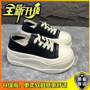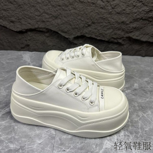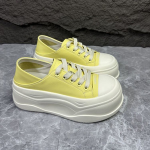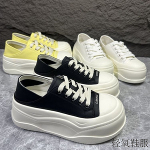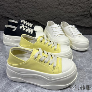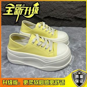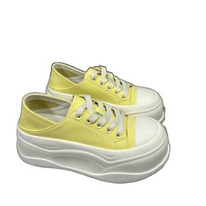黄色春夏季女鞋松糕底板鞋2025中跟厚底运动休闲鞋子浅口系带单鞋