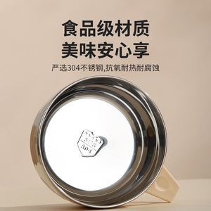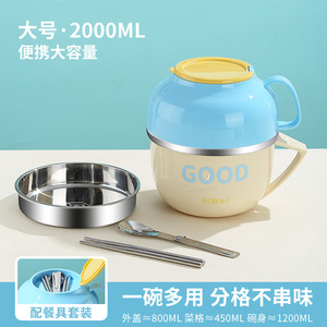 304不锈钢圆形餐盒双手柄饭盒便携上班族便当碗食堂打饭快餐杯