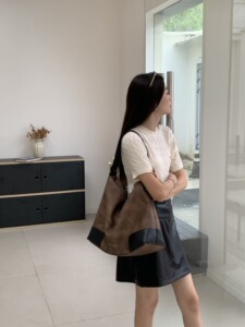 2025年新款高级感大容量撞色拼接时尚百搭休闲上班通勤托特大包潮
