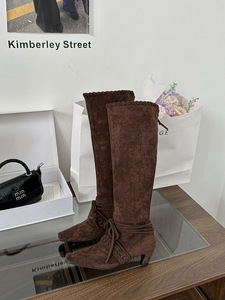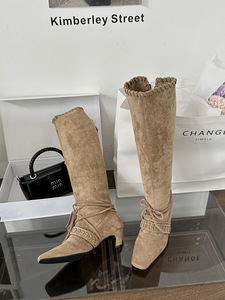 方头西部风长筒靴女2025新款小个子内增高不过膝骑士靴高筒堆堆靴
