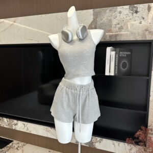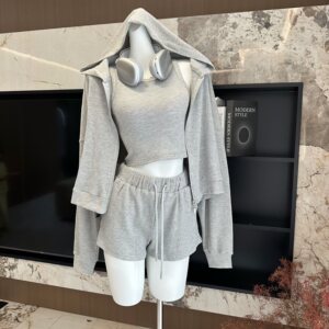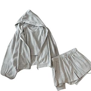 松弛美学早秋新款连帽休闲开衫背心吊带短裤时尚套装女