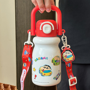 蜡笔小新联名款可爱儿童保温杯2025新款大容量便携手提双饮吸管