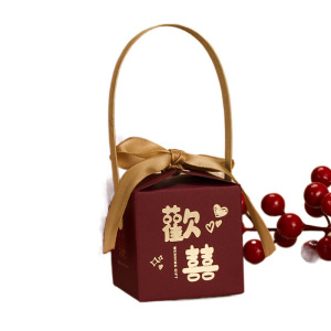 手提镂空酒红双喜(包好发货)-轻奢套餐D