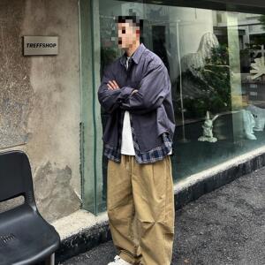 到位男装XDZZ二狗秋季高街宽松假两件设计格子衬衫外套C188+C189
