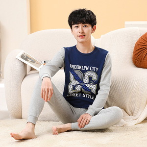 青少年秋衣秋裤纯棉儿童睡衣男童保暖内衣女童打底棉毛衫衬衣衬裤