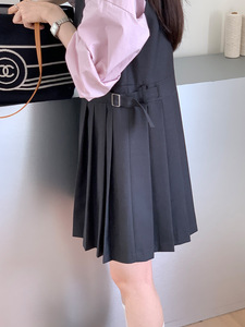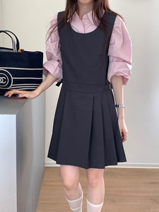 韩系学院风灰色背心裙叠穿无袖连衣裙女秋季新款a字百褶短裙子