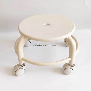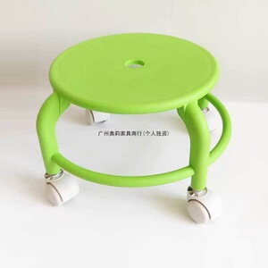家用矮凳塑料圆凳美缝修脚儿童旋转学步带娃滑轮凳万向轮小凳子
