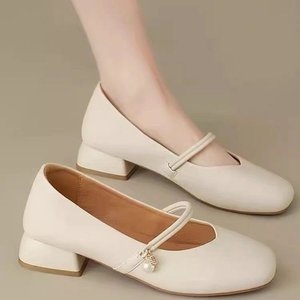 法式玛丽珍鞋2025秋季新款粗跟单鞋温柔晚晚鞋软底一字扣浅口皮鞋