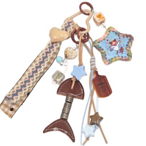复古皮革鱼叉骨挂饰木牌星星编织绳爱心包包挂件小提溜可挂萌娃