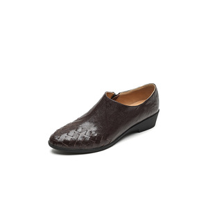真皮羊皮平底坡跟奶奶鞋软底拉链深口单鞋女秋季复古窝窝鞋小皮鞋