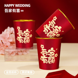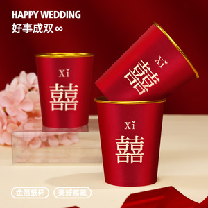 结婚纸杯一次性喜杯子红色加厚水杯婚礼用品大全婚庆订婚家用婚宴
