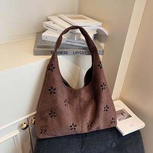 韩系ins镂空设计单肩包麂皮绒女HOBO包大容量休闲清新通勤腋下包