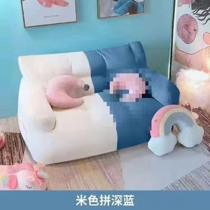 湖蓝拼米色-【新款双人位】【棉麻面料】