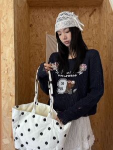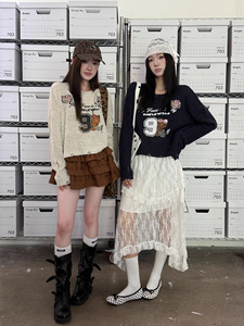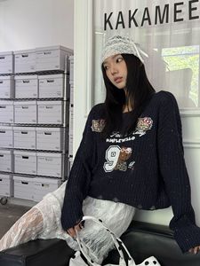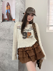 ME KAKAMEE十三行秋新品贴布卡通kitty破洞针织衫短款小衫女 S206
