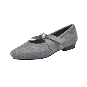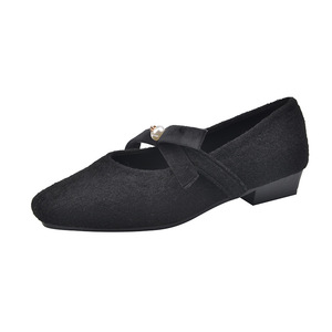 法式小香风玛丽珍鞋2025加绒保暖圆头浅口配裙子结珍珠晚晚鞋