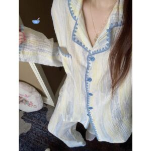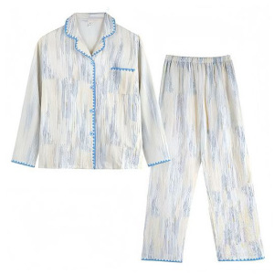 云朵棉睡衣女春秋季长袖套装高级感渐变条纹家居服可外穿跨境批发