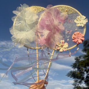 原创古风绢花扇子圆形飘带花朵拍摄道具汉服洛丽塔搭配手工团扇