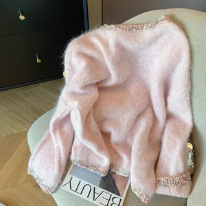 粉色拼接花边马海毛毛衣女2025秋冬新款温柔风慵懒软糯减龄针织衫