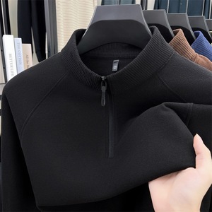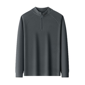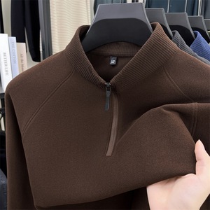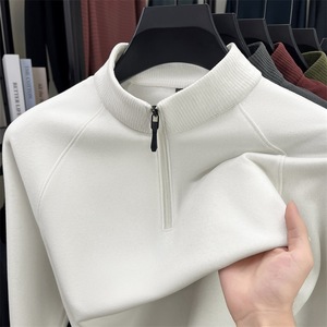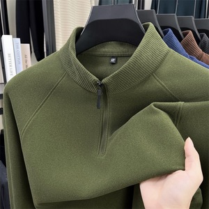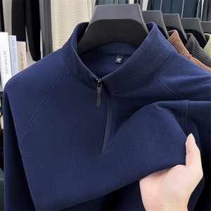 秋冬新款男士中青年半高拉链德绒阳离子保暖长袖T恤卫衣男打底衫