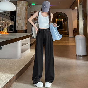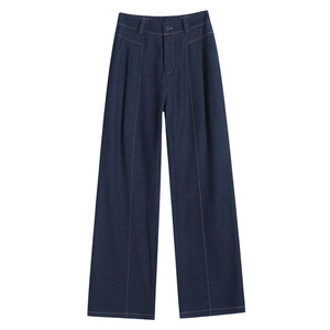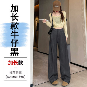 2025秋季新款垂感丹宁牛仔西装阔腿裤宽松高腰显瘦窄版休闲直筒裤