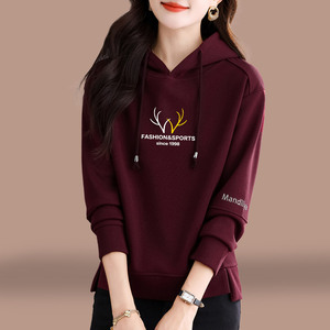 连帽女士卫衣春秋薄款2025新款洋气减龄中年妈妈休闲长袖带帽上衣