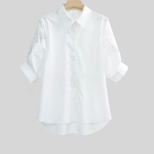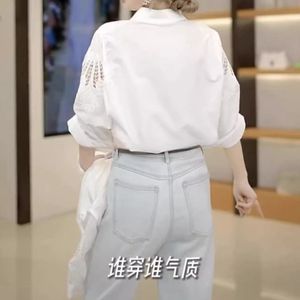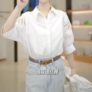 凤羽刺绣镂空设计感白色衬衫女休闲时尚七分袖衬衣气质别致上衣