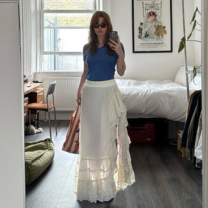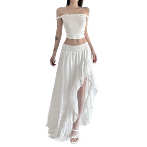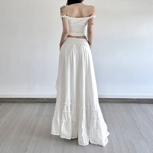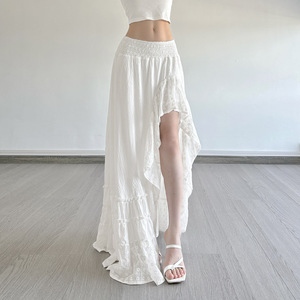波西米亚风度假不规则荷叶裙气质长款开叉松紧腰宽松长裙2025秋款