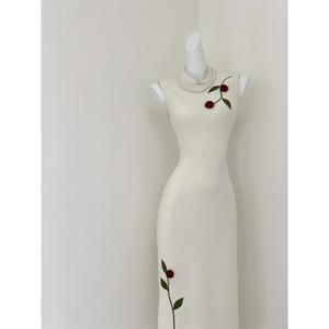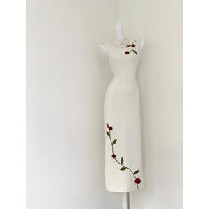 新中式手工立体玫瑰花杏色改良旗袍2025年夏季百搭裙