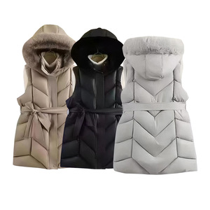 外贸女款连帽马甲外套2025时尚女装带大毛领保暖加厚外穿棉衣马甲