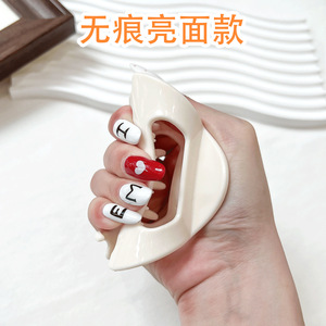 新款跨境亮面三角形软硅胶抓夹后脑勺半扎马尾夹鲨鱼夹高级感发饰