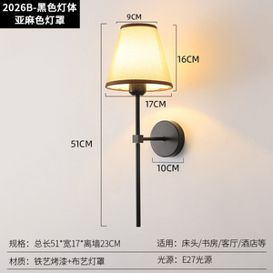 跨境新款免布线充电壁灯RGB室内床头灯美式简约布罩壁灯酒店壁灯