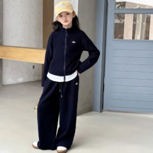 韩版儿童字母休闲洋气套装2025秋装女童运动开衫秋季阔腿裤两件套