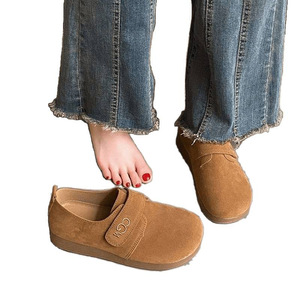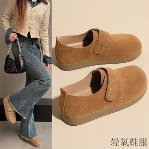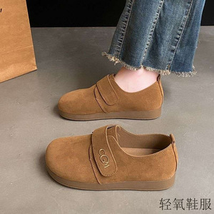 2025早秋新款女鞋软底魔术贴单鞋复古丑萌豆豆鞋休闲软木鞋