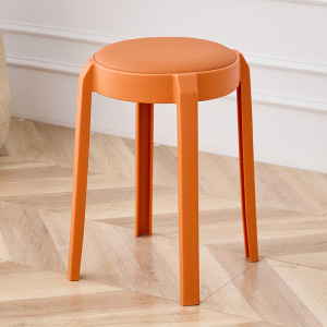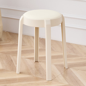 塑料凳子家用可叠放轻奢高级感软包圆凳客厅餐厅餐桌休闲板凳批发