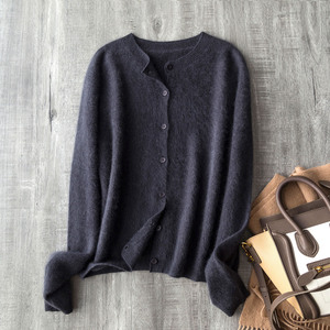 羽毛紫圆领开衫