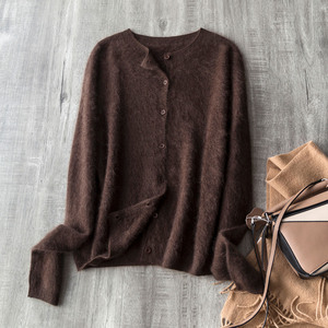 咖色圆领开衫