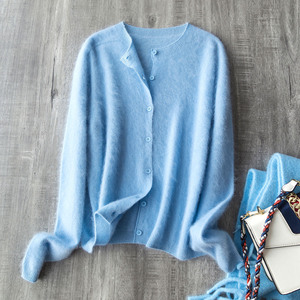 羽毛蓝圆领开衫