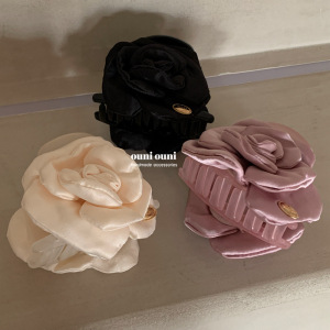超仙山茶花抓夹氛围感缎面花朵发抓半扎盘发夹子后脑勺发爪发饰品