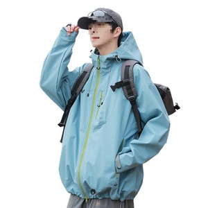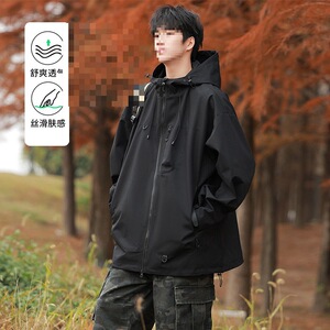 户外防风防水冲锋衣男春秋潮流美式连帽撞色宽松夹克