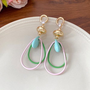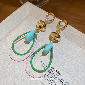 银针锆石珍珠水滴圆形流苏耳环法式复古耳坠耳钉轻奢高级感耳饰女