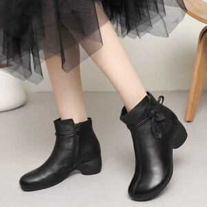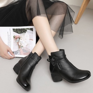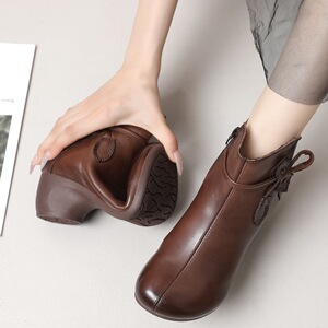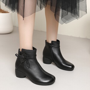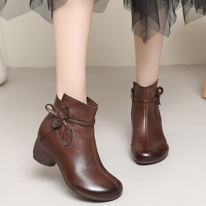 靴子2025新款真皮手工复古民族风马丁靴女粗中跟防滑短靴秋花朵