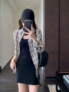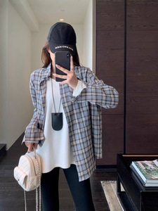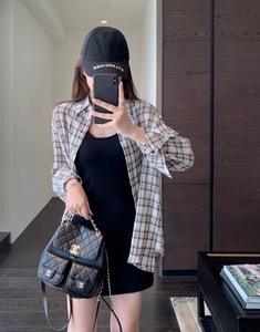慵懒时髦oversize宽松藏肉显瘦格子衬衫薄款上衣女夏百搭休闲衬衣
