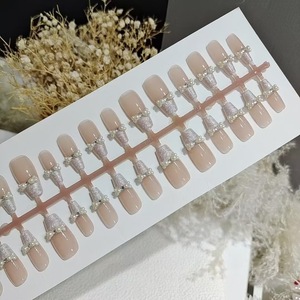 穿戴甲30片整条T099贝母螺纹中梯手工温柔裸色系珍珠钻百搭假指甲