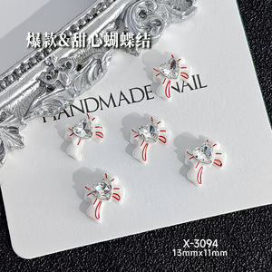 韩系少女甜心斜角蝴蝶结领结美甲饰品