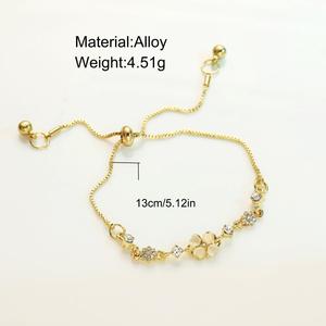 欧美跨境新款超闪锆石几何手链个性轻奢高级感时尚叶子推拉手链女