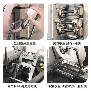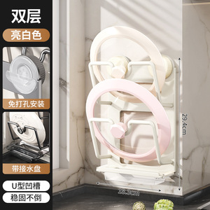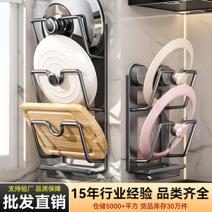 批发吸盘锅盖架免打孔多功能厨房置物架砧板锅具壁挂多层收纳架子