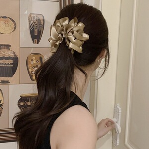 高级感缎面褶皱泡泡香蕉夹女2025新款大号后脑勺马尾发夹头饰
