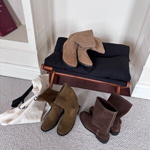 LAMODE 2025秋冬新款真皮牛皮短靴内增高显瘦百搭圆头骑士靴女