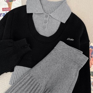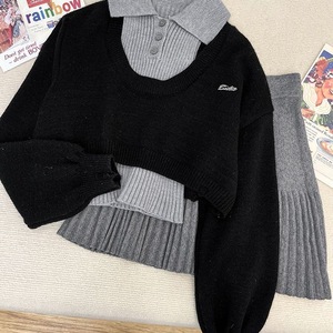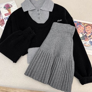 学院风穿搭设计感短款针织衫毛衣女秋冬季a字百褶半身短裙三件套