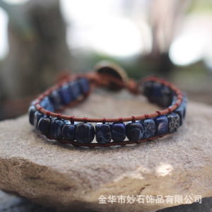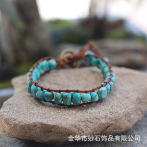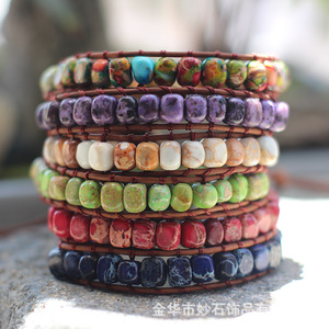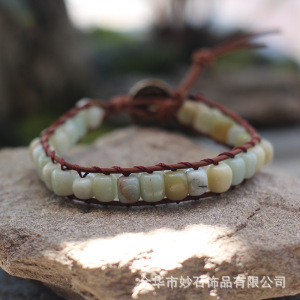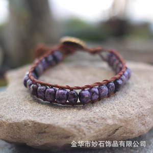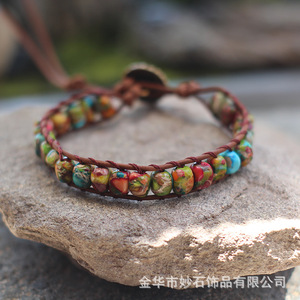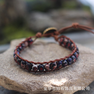 亚马逊Temu爆款随形5*7寿山石帝皇石手链 皮革编织波西米亚风手牌